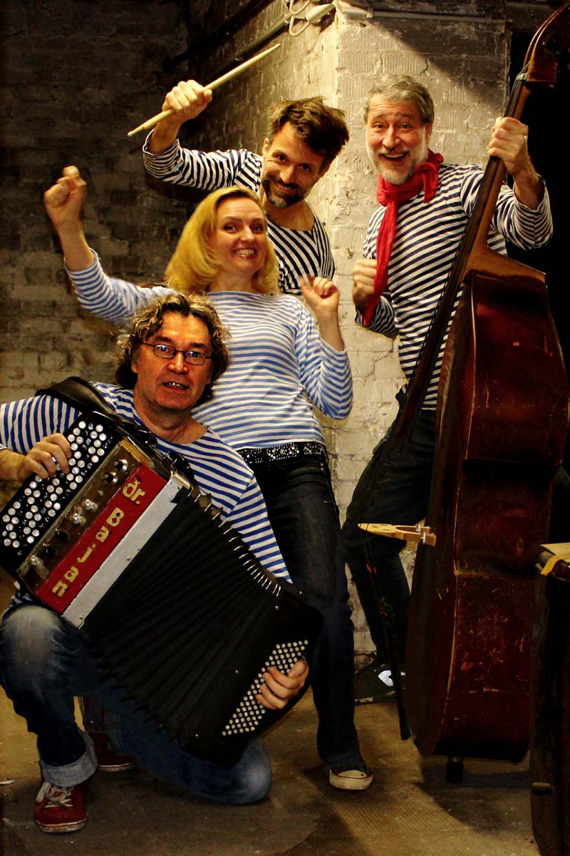 Концерт берлинской группы Dr. BAJAN в составе двух певцов, которые также играют на двух аккордеонах, в сопровождении контрабаса и ударных.